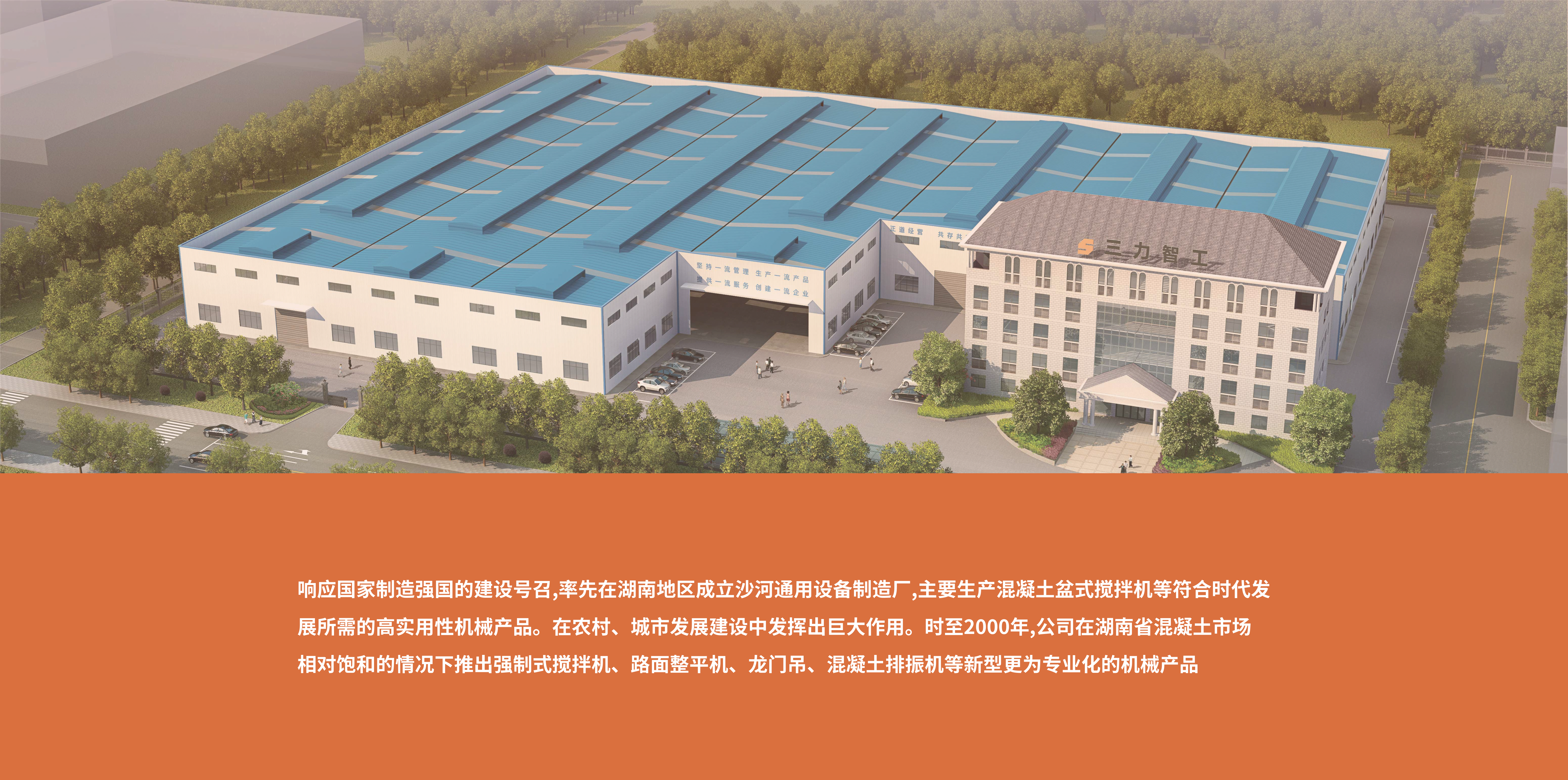 湖南三力智工機(jī)械股份有限公司成立于1995年,是湖南省建筑機(jī)械行業(yè)規(guī)模較大,是集研發(fā)、設(shè)計(jì)、生產(chǎn)、銷(xiāo)售、安裝、售后服務(wù)為一體的專(zhuān)業(yè)性機(jī)械龍頭企業(yè)。公司主要銷(xiāo)售產(chǎn)品為混凝土攪拌站、穩(wěn)定土拌合站、混凝土路面施工機(jī)械、混凝土環(huán)保設(shè)備、破碎制砂設(shè)備、制砂樓等成套專(zhuān)業(yè)機(jī)械設(shè)備。公司總部設(shè)于長(zhǎng)沙市寧鄉(xiāng)高新區(qū)程機(jī)械配套產(chǎn)業(yè)園,廠(chǎng)區(qū)占地面積58000余平方米。三力智工現(xiàn)共有員工近400余人。有國(guó)內(nèi)先進(jìn)的鑄造中心、行業(yè)高效的機(jī)加工、裝試生產(chǎn)線(xiàn),各類(lèi)機(jī)械加工設(shè)備、檢測(cè)設(shè)備100余臺(tái)。